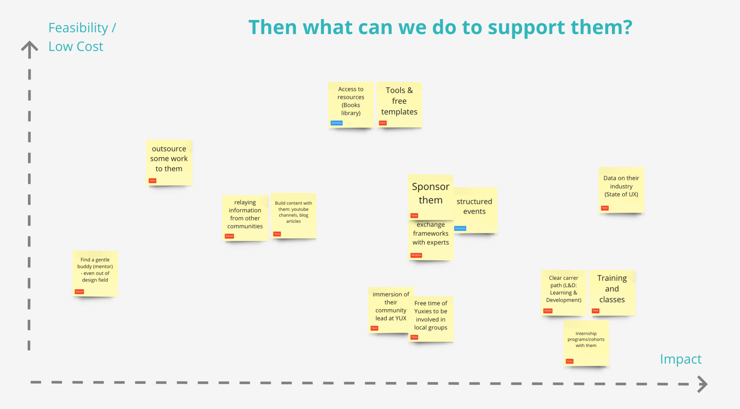 Then with the YUX team, we looked at the most impactful things we could do to support local UX and HCD groups, bearing in mind our limited resources and time availability. Here are the main items that came out: