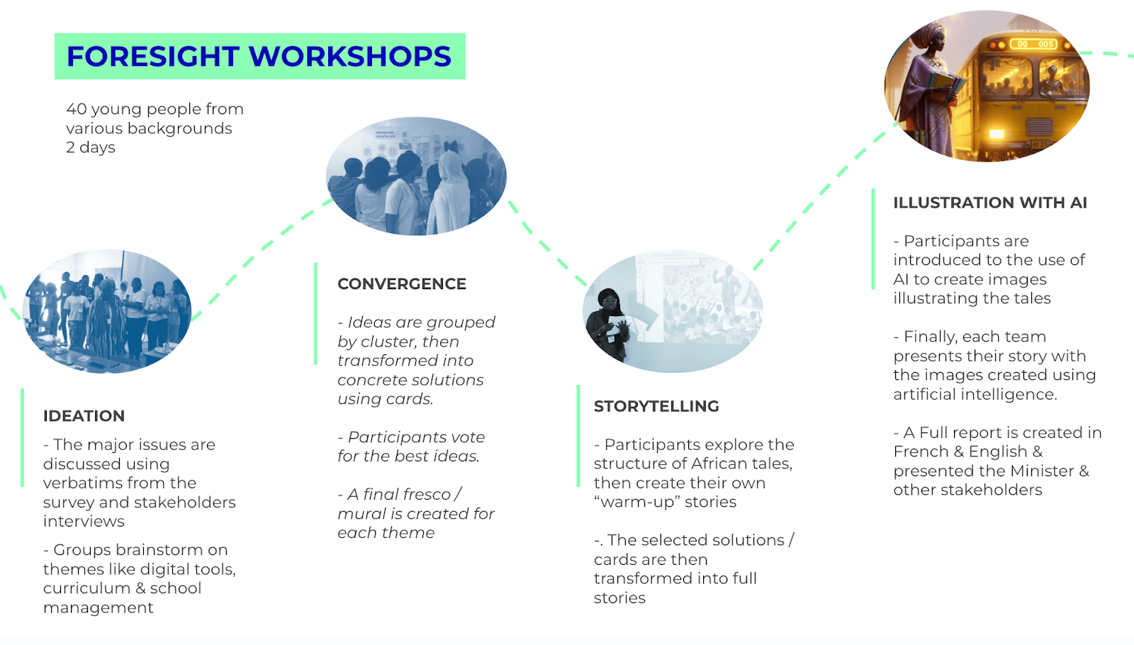 The project's foresight workshops conducted in 2024 in Senegal, utilize the traditional structure of African tales – encompassing elements like a formulaic introduction, a defined universe, a central character facing challenges, and a moral lesson – as a framework for participants to articulate their visions for the future of education. This approach allows young people to express complex ideas in a relatable and culturally relevant manner.